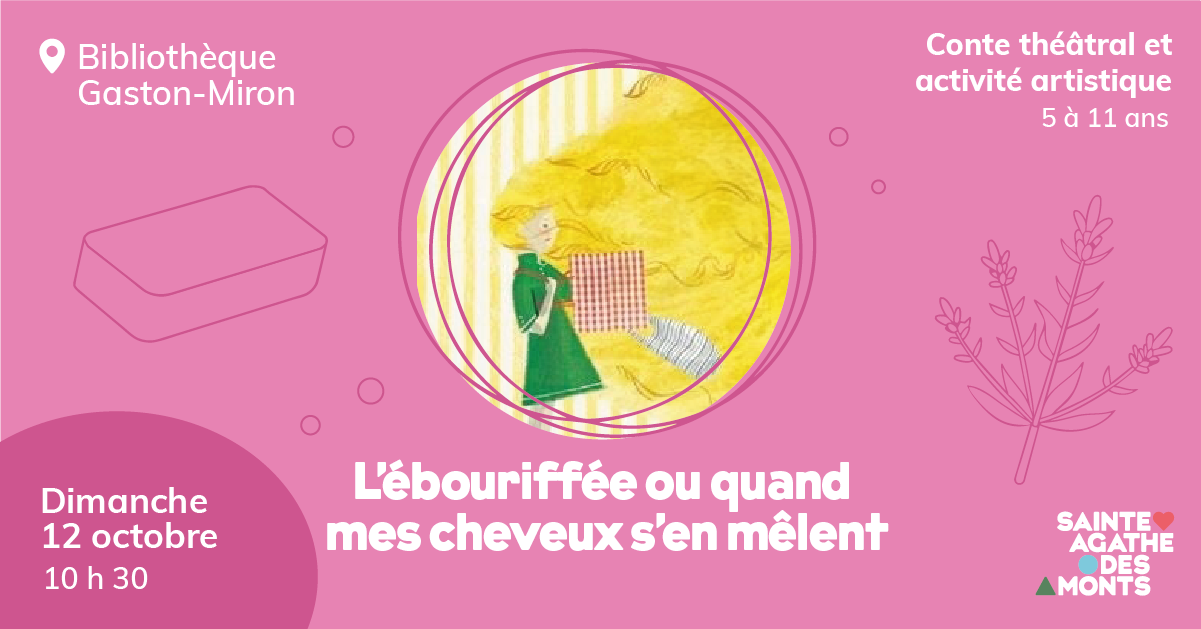 Bibliothèque Gaston-Miron 83, rue Saint-Vincent ,Sainte-Agathe-des-MontsPlongez dans l’univers coloré de L’ébouriffée, un conte fantaisiste inspiré de l’histoire personnelle de l’autrice. Après une courte présentation de son métier et de sa démarche créative, les enfants seront invités à imaginer de nouvelles aventures pour Malie, l’héroïne à la chevelure indomptable. À travers le dessin, l’écriture et le découpage, chacun pourra inventer qui ou […]
